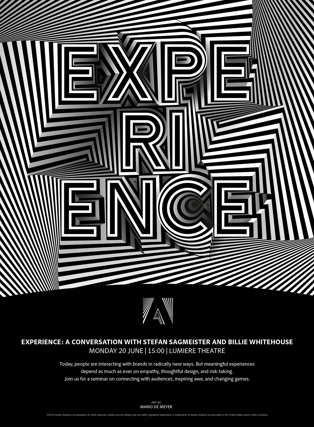 Art for our 'Experience' seminar hosted by Stefan Sagmeister and Billie Whitehouse was done by Mario De Meyer of Belgium.