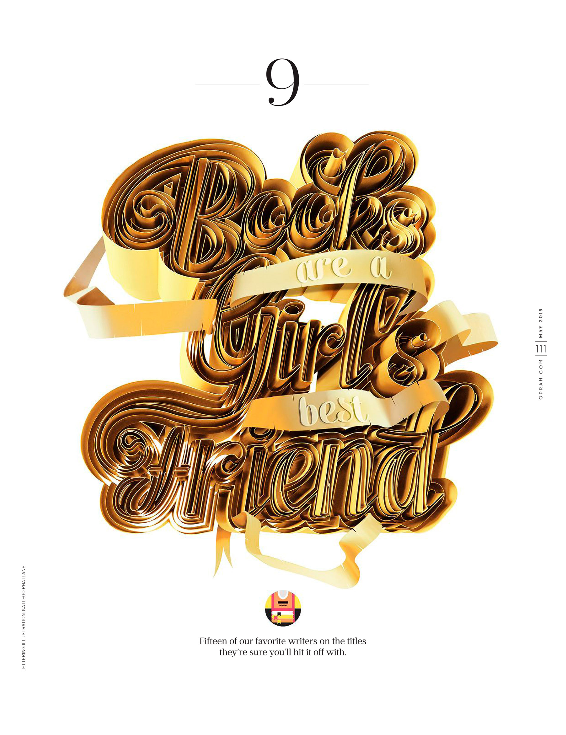 Design Director Jill Armus at Oprah Magazine in NYC put together a special 15th anniversary issue of the worldwide magazine. The special issue is broken up into 15 chapters, and 15 chapter openers were assigned to 15 different artists. I worked on the Books section (chapter).